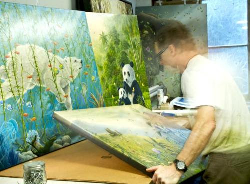 Imaginary Realist Robert Bissell creates a completely different atmosphere from our daily experience, inviting us to learn more about ourselves. In his paintings, the world of animals is a mirror for human existence, self-definition and reflection. Bissell’s work causes us to reflect on the environment, life, death, renewal and the stages of transition - departing from the safety of family, and making our way in the world.